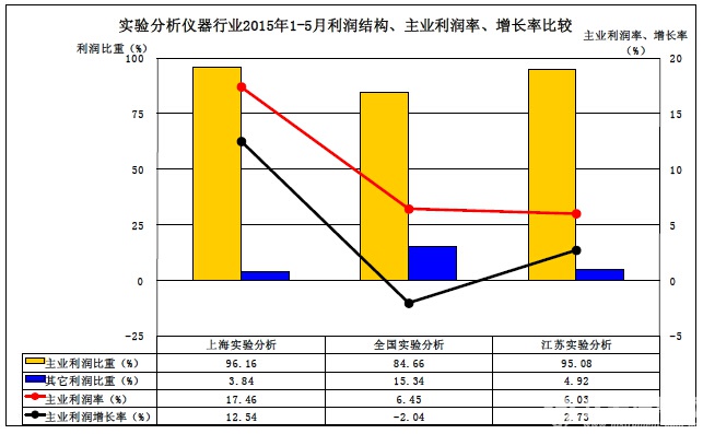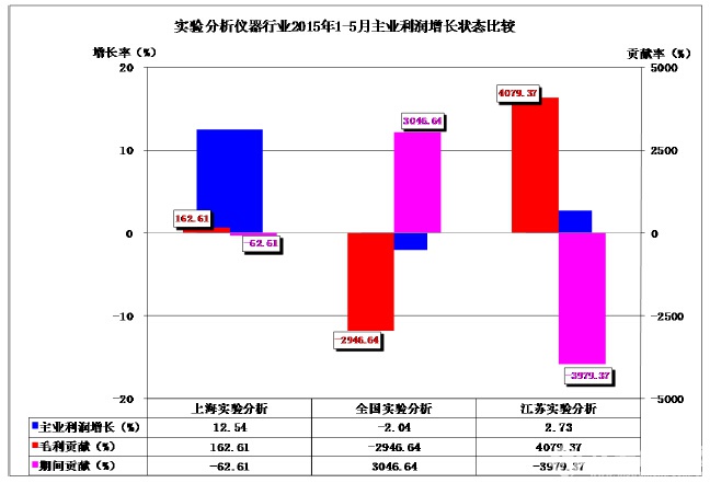 表1、全国实验分析仪器行业2015年(1-5)月经济运行状态