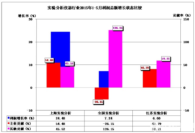 2、2015年1-5月实验分析仪器行业主要省市利润总额增长比较
