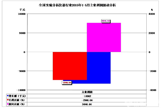 图2、全国实验分析仪器行业2015年1-5月主业利润波动分析