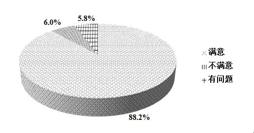 本次考核总体情况见表1,考核结果分布图见图1。在收回的364份有效结果中,考核结果为“满意”的单位为321家,占88.2%?! ?/p>