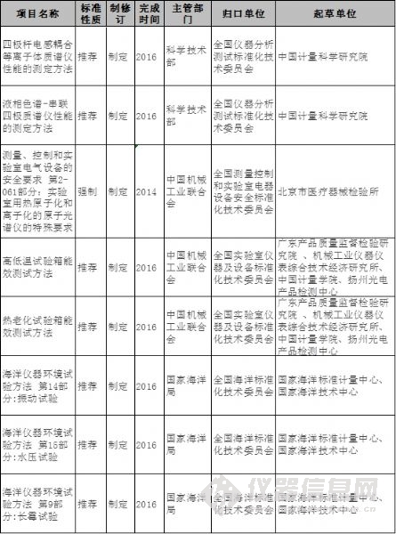 日前,国家标准委发布了2014年第一批国家标准制修订计划的通知,通知中提出将制定四极杆电感耦合等离子体质谱仪、液相色谱-串联四极质谱仪的性能测定方法的标准。另外相关的仪器标准还有原子光谱仪安全要求标准,高低温试验箱、热老化试验箱效能测试方法标准,以及海洋仪器环境试验方法标准。