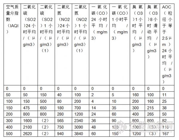 对AQI的所有计算公式不变.(详见HJ 633—2012),标重部分为新设数值,并去除了PM10部分