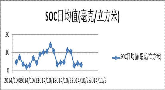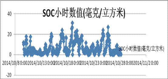 从以上三个图谱及数据可以看出:重污染时SOC数据也是在小时区间内发生很大变化的,小时级的数据监测可以精准研判污染的程度;而日均的数据可以使污染的趋势更容易被解读。