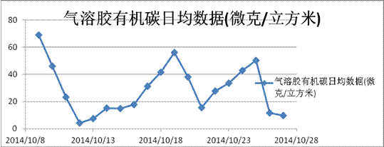 图二的小时气溶胶有机碳数据则清晰揭示了从10月9日-10月28日污染的波动情况。