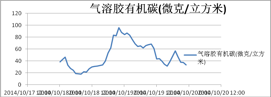 从图一的数据可以看出:10月18日出现的峰值数据有一个小时的气溶胶有机碳在90-100微克/立方米,而在80-90微克/立方米的气溶胶有机碳数据有6个小时,这或许提示我们:连续监测气溶胶的小时数据是揭示大气污染的真实状况的一个重要手段。