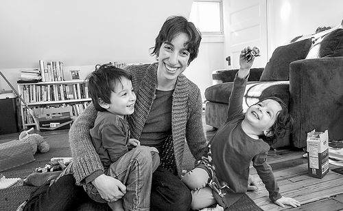 Jennifer Couzin-Frankel与两个孩子正在做游戏。和很多人一样,她希望在孩子成长过程中,通过基因检测在某种程度上保护家人的健康。图片来源:APRIL SAUL